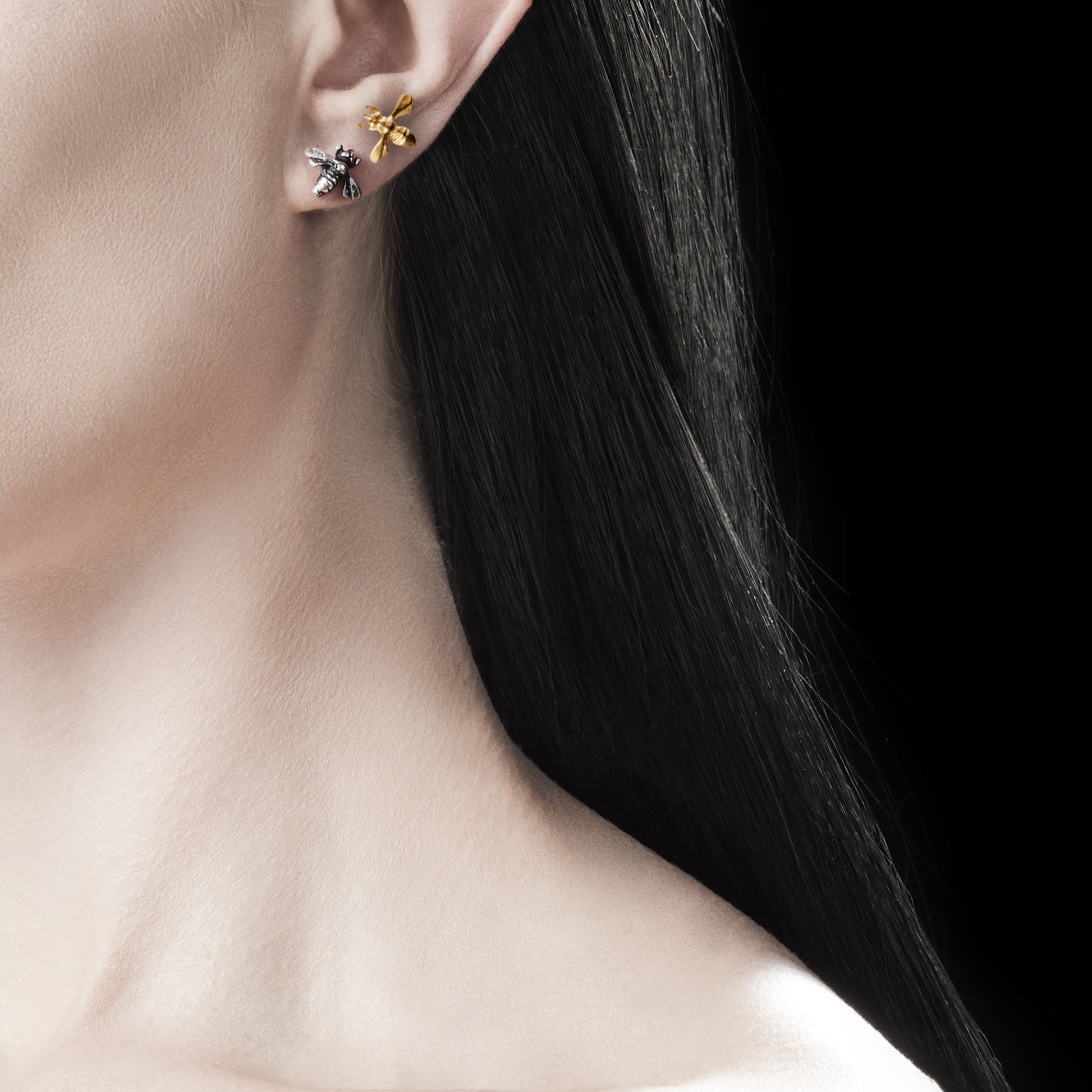 Our sterling silver Bee stud earrings are sold in pairs and have been created to mix and match with each and every style of our exclusive Heart of Bone curated earring collection.